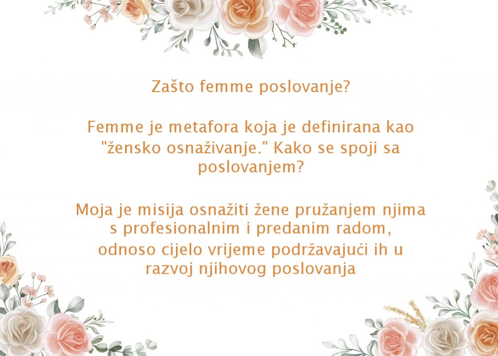 Ako ste ženska neprofitna organizacija, udruženja, poslovna žena ili ženska poduzetnica, kontaktirajte me putem kontakt linka kako bismo mogli razgovarati o tome kako mogu podržati vas, vaš tim, klijente i članove.